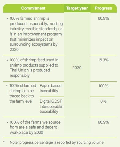 The report presents a rich set of quantitative targets aligned with SeaChange® 2030 commitments. Thai Union has achieved a 21% reduction in Scope 1 and 2 GHG emissions and a 32% reduction in Scope 3 emissions from a 2021 baseline, with the majority of Scope 3 reduction arising from lower purchase of energy-intensive pole-and-line-caught tuna .