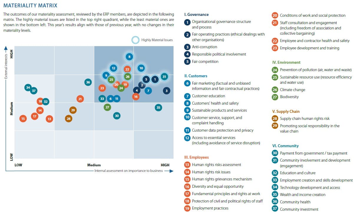 Notably, sustainability performance is linked to management remuneration, signalling strong internal accountability and alignment with global best practice. The presence of multiple Board committees, alongside an advisory panel and external review panel, reinforces governance robustness and introduces independent perspectives into ESG strategy and reporting quality.
