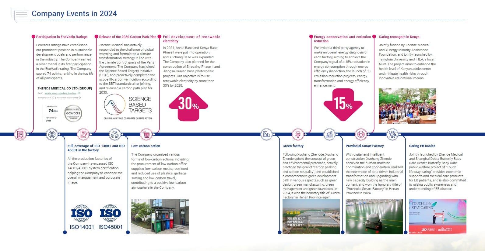 Community Involvement: The ESG report underscores Zhende Medical’s commitment to social welfare and global health. In 2024 the company launched the “Butterfly Baby” Care Project in partnership with a Shanghai non-profit, providing financial aid and medical supplies to children suffering from Epidermolysis Bullosa (EB), a rare skin disease. The initiative not only delivers much-needed treatment materials but also raises public awareness of EB to support these “butterfly” children. Internationally, Zhende co-sponsored the Afya Kesho project in Kenya – an innovative adolescent health education program developed with Tsinghua University and local NGOs to improve youth health outcomes. Through such programs, along with employee volunteer campaigns totaling over 2,000 hours of service in 2024, Zhende is extending its care mission beyond business, strengthening community resilience and healthcare knowledge. The company donated RMB 2.30 million to charitable causes during the year, reflecting gratitude and responsibility toward society. “Public welfare activities serve as a bridge to convey love and a channel to plant seeds of hope,” notes Chairman Lu Jianguo in the report, reaffirming that community engagement is integral to Zhende’s corporate ethos.
